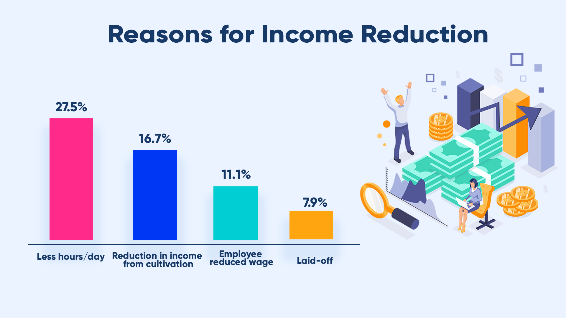 Most of the people had to work less hours per day due to the pandemic and it has reduced their income