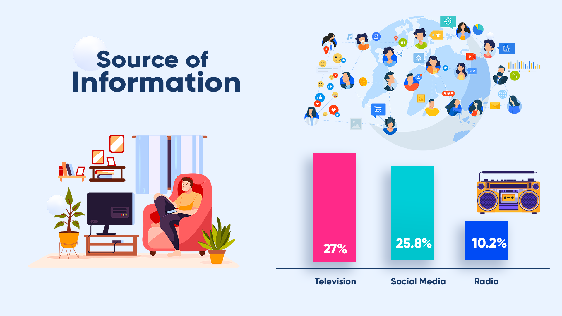 Television is the major source of information for more number of families while it followed by Social media and radio
