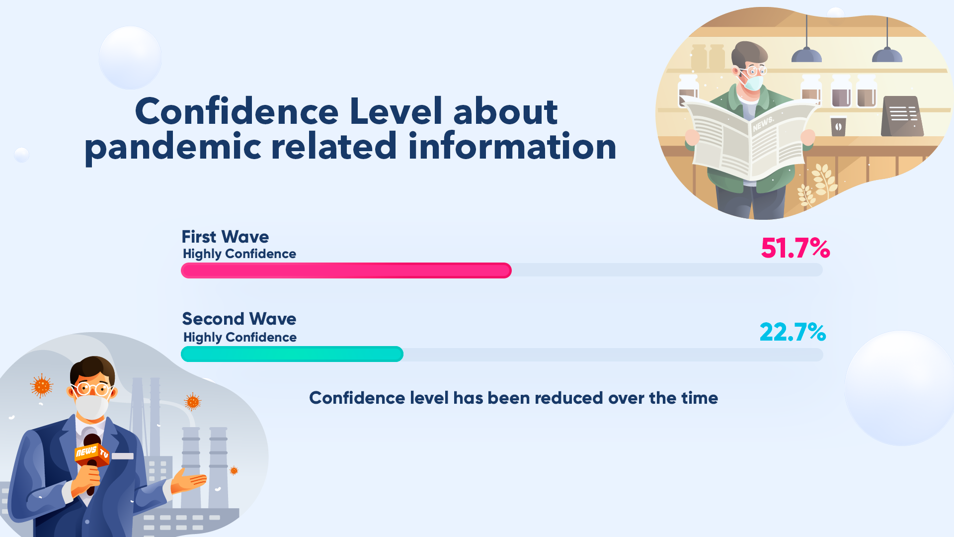 The confidence level regarding the pandemic related information they receives was reduced over the time.