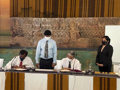 The event of signing the letter of intent between the University of Peradeniya and the Ministry of Health, to collaborate on the research project entitled "An Artificial Intelligence framework for threat assessment and containment for COVID-19 and future epidemics while mitigating the socio-economic impact to women, children, and underprivileged groups", dubbed COVID-AI Project, took place on 18th of December 2021 at the Heritance Kanadalama, Dambulla. The event was graced by the Director General of Health Services,Dr. Asela Gunawardena ; the Vice Chancellor of the University of Peradeniya, Prof.M.D.Lamawansa and all the project investigators from the disciplines of Engineering, Social Sciences and Medicine.